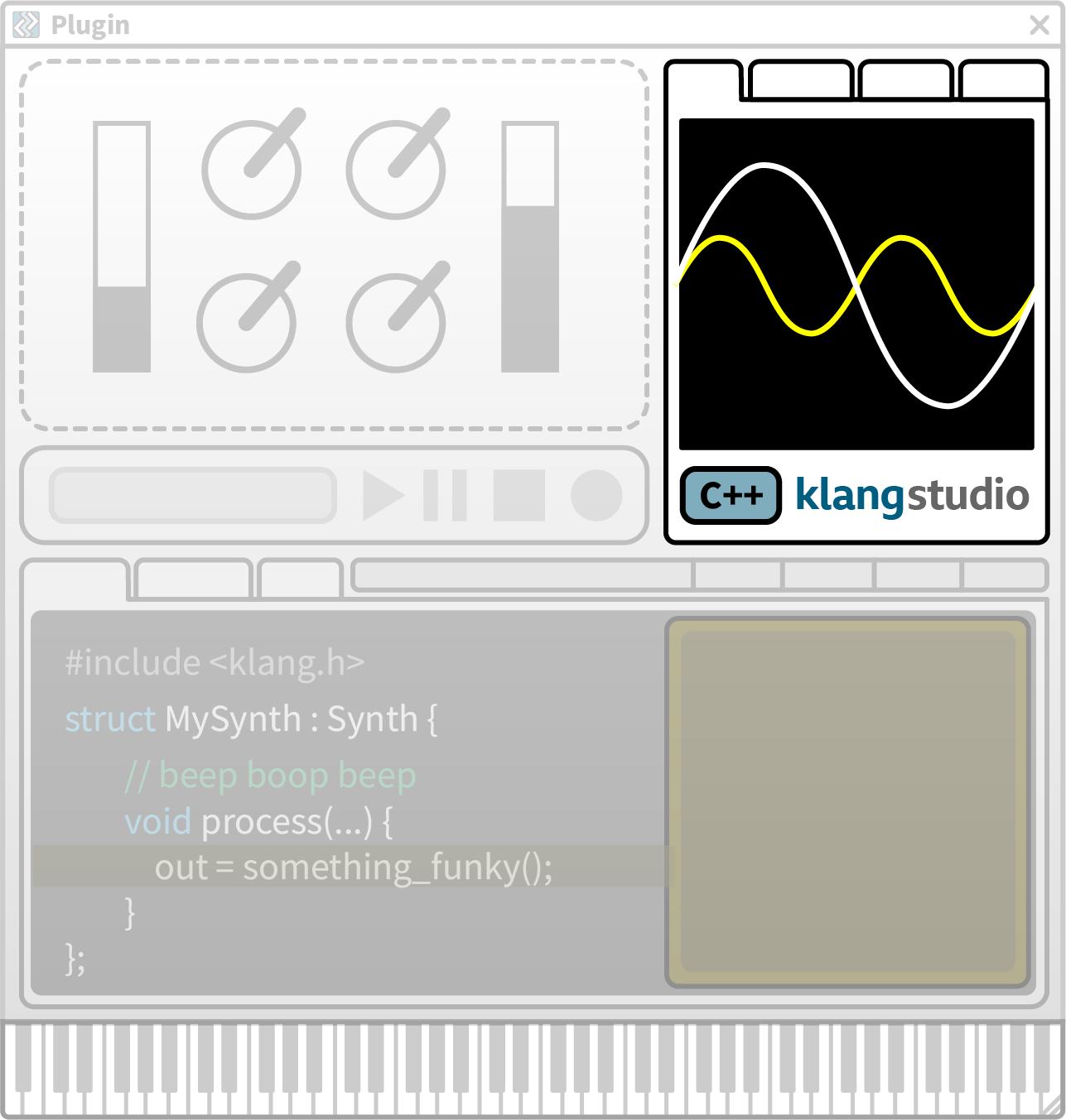 The Plugin UI provides realtime control of the live plugin. Use the controls array to arrange dials, sliders, menus, buttons, etc.