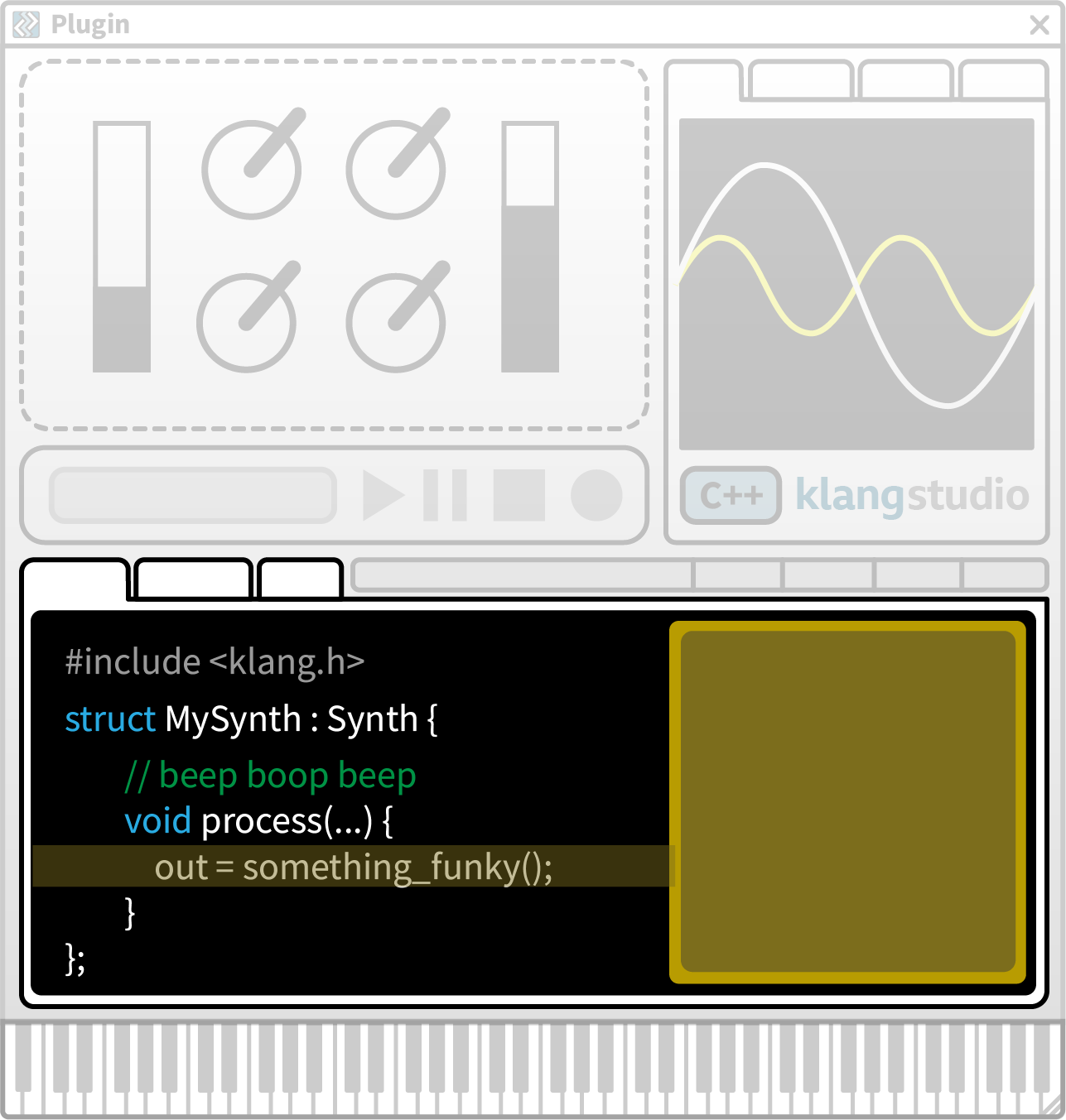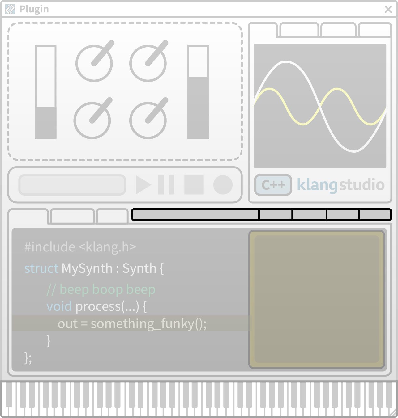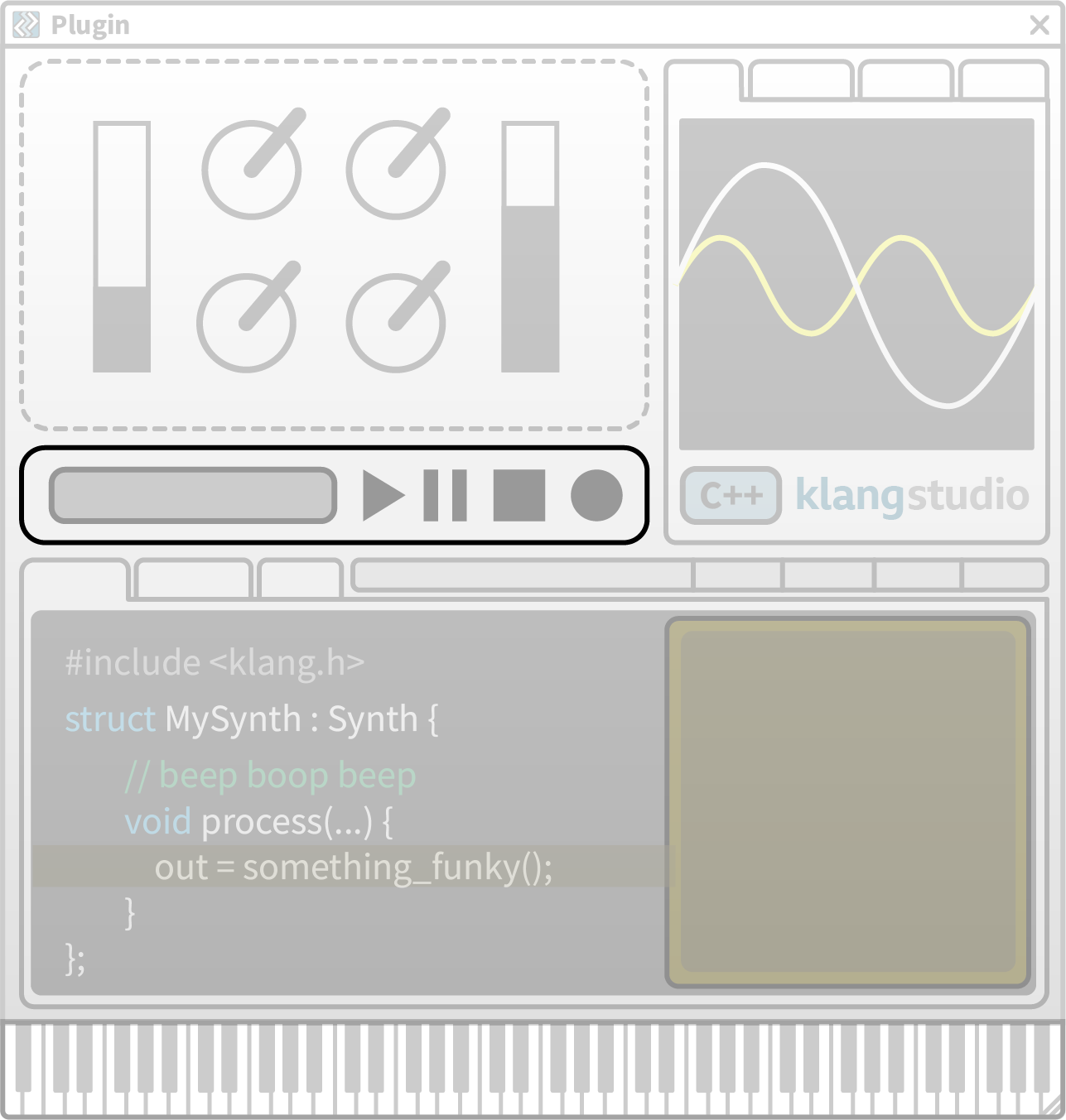 The Plugin UI provides realtime control of the live plugin. Use the controls array to arrange dials, sliders, menus, buttons, etc.