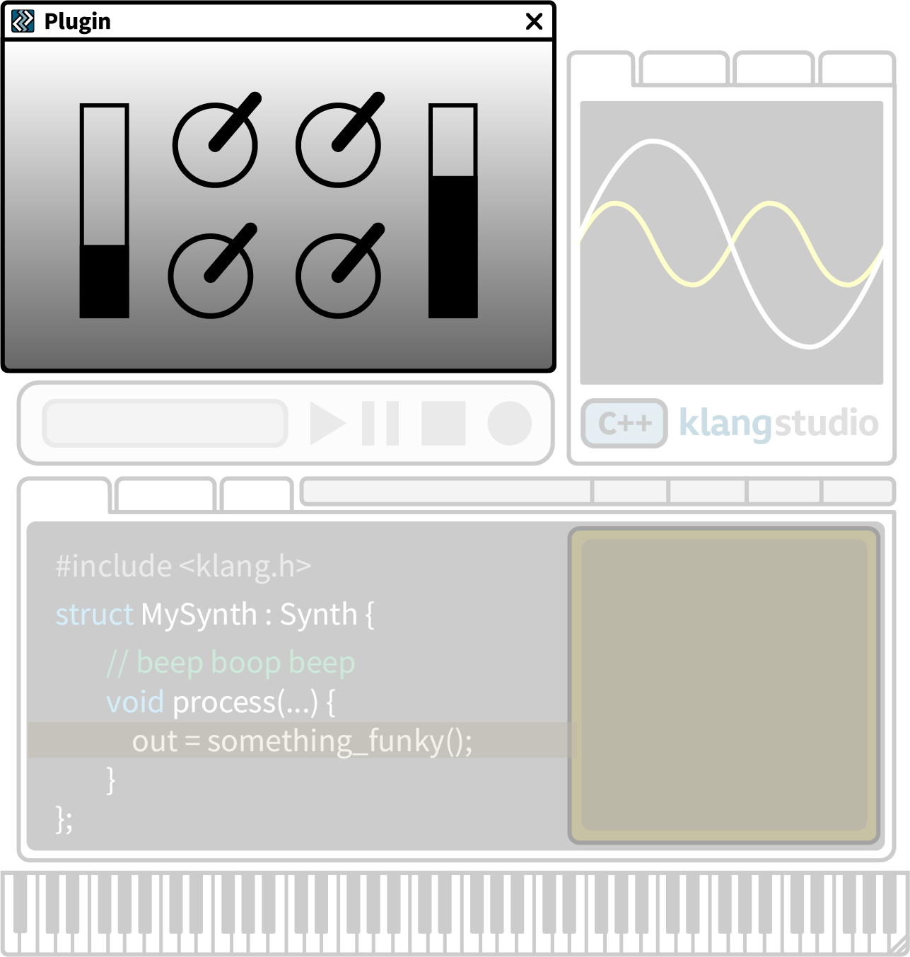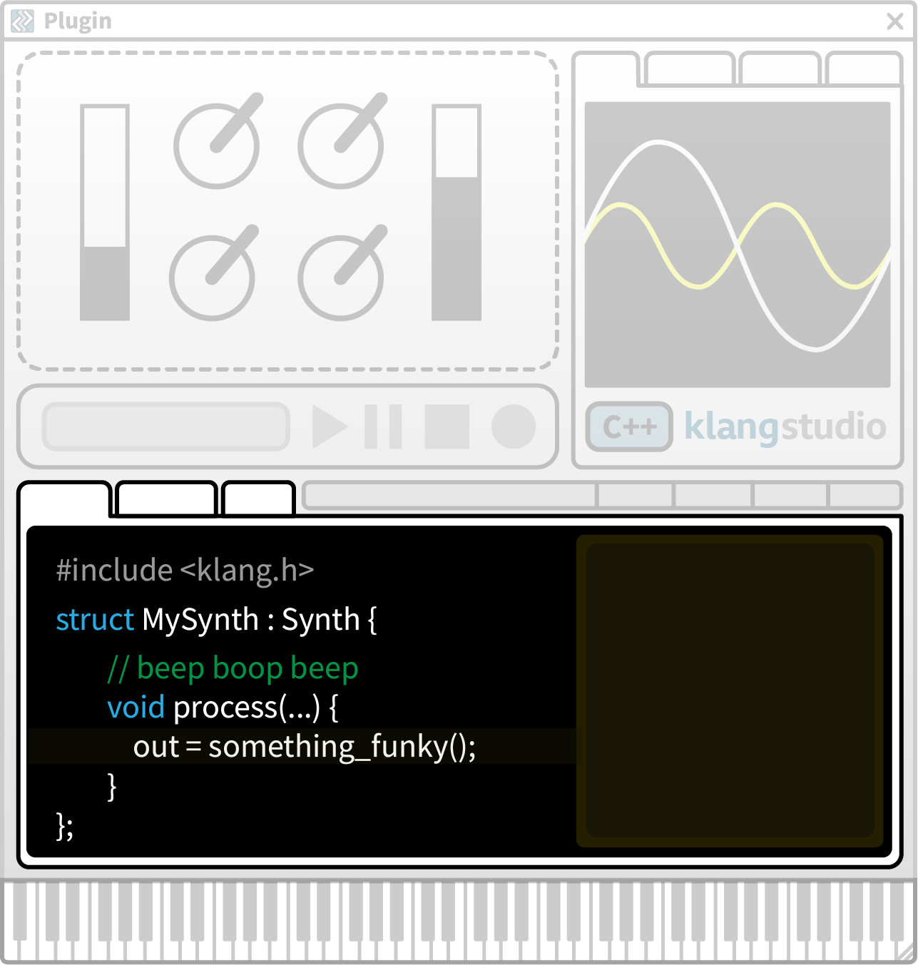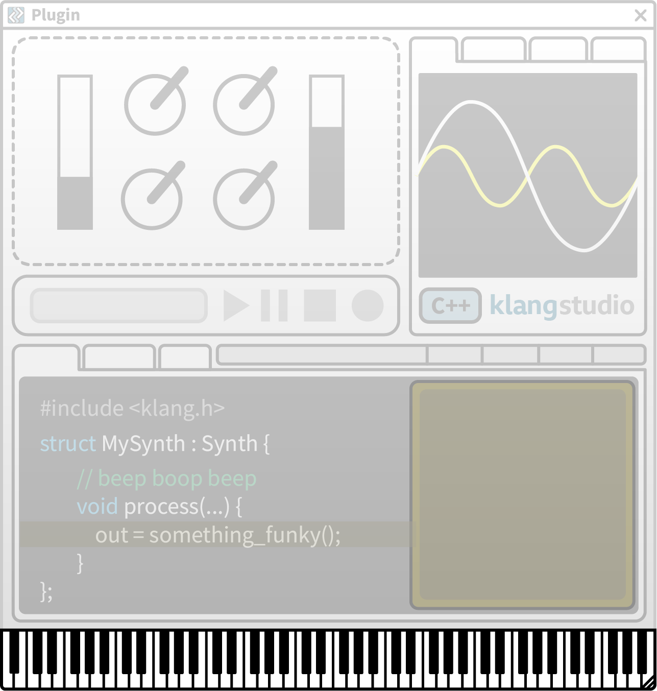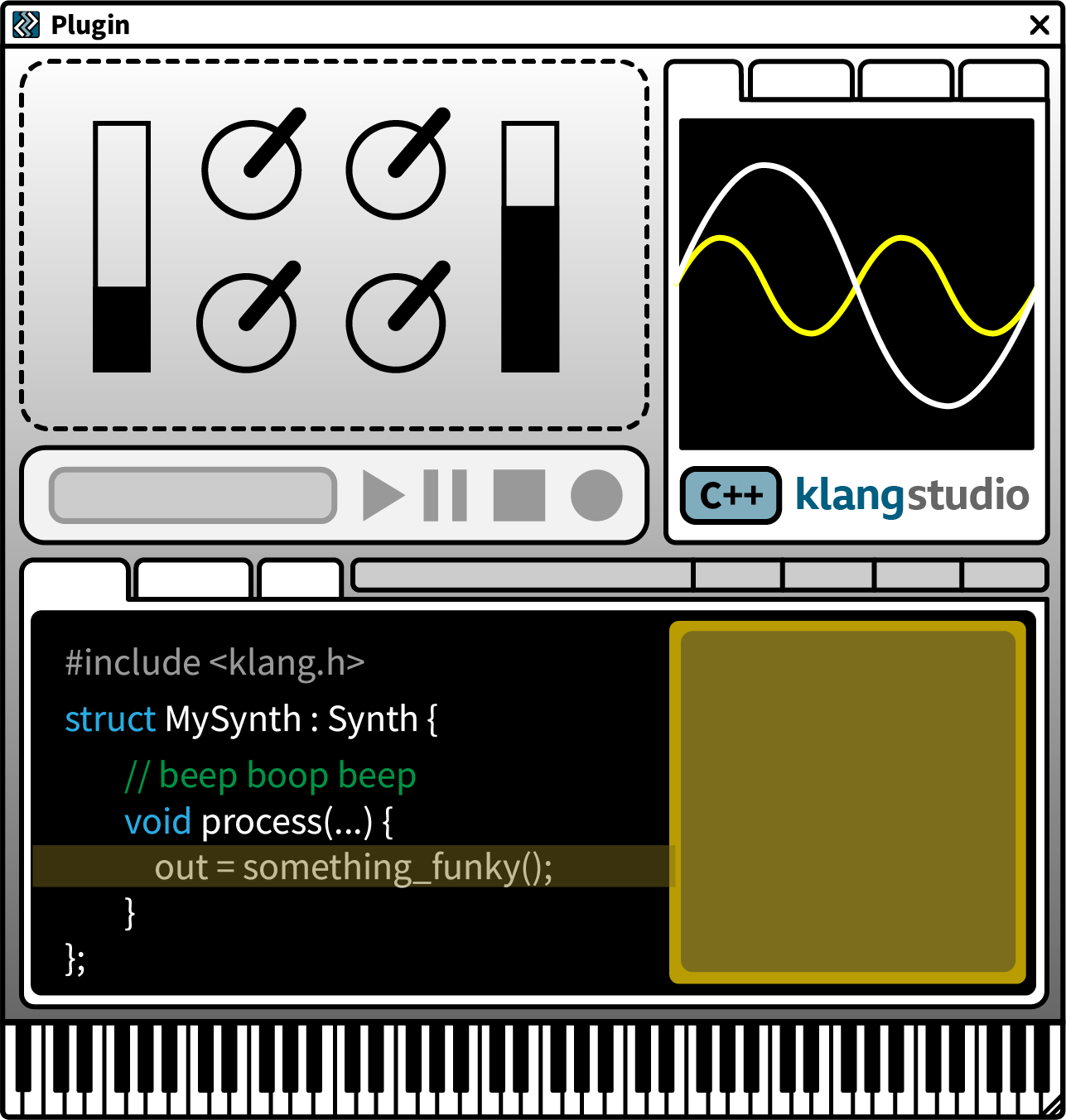 The Plugin UI provides realtime control of the live plugin. Use the controls array to arrange dials, sliders, menus, buttons, etc.